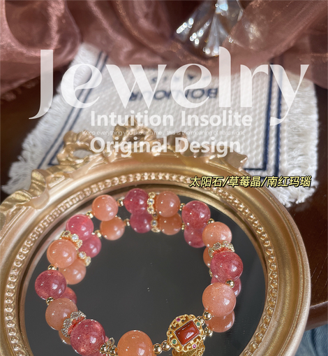 Sunstone & Strawberry Quartz Combo Bracelet:
