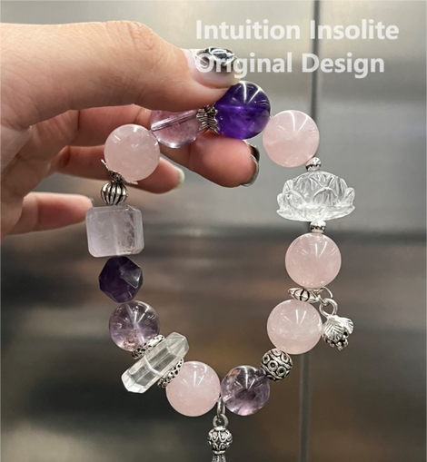 This beautiful bracelet features white quartz, rose quartz, and amethyst, creating a harmonious accessory that promotes emotional healing, self-love, and spiritual awareness while providing clarity, calmness, and protective energy for the wearer.